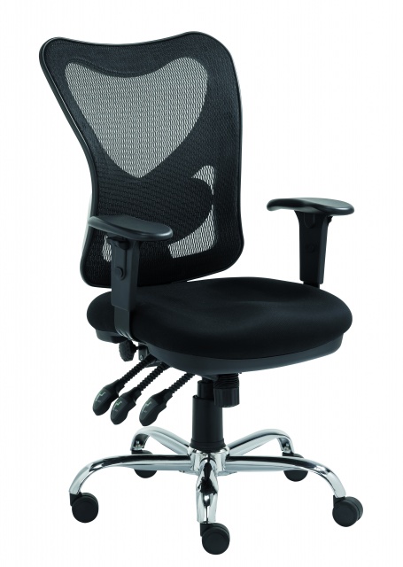 De naam MIRA betekent 'verwonderlijk' of 'mooi', en die naam komt niet uit de lucht vallen. Door de chique verchroomde kruisvoet en het opvallende design van de rug is de MIRA bureaustoel een ware blikvanger. De stoel heeft een stoffen zitting en een netwave rug, beiden in de kleur zwart. Uiteraard zijn de zithoogte, zitdiepte en de hoogte van de armleggers in te stellen voor optimaal zitcomfort. De MIRA bureaustoel wordt geleverd met 2 jaar garantie.