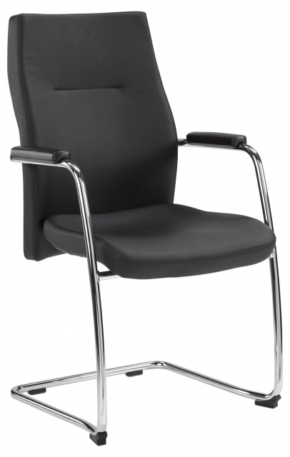 De Talitha-V is voorzien van een kunstlederen zitting in combinatie met een chroom onderstel en armleggers. De armleggers bevatten kunststof opdekjes. Standaard wordt deze vergaderstoel op voorraad gehouden in de kleur zwart.